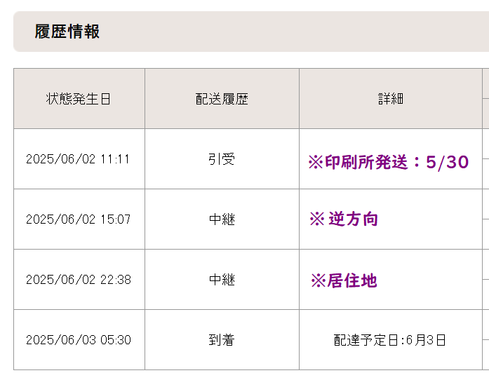 (いつも普通に発送の翌日届く)無事箱の中確認するまですごく心配だった