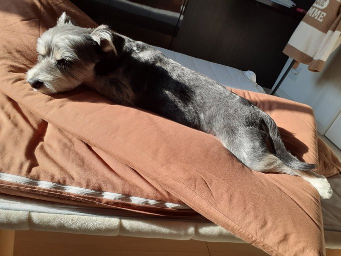 と 目が覚めたら愛犬が私の左手をきゅっと抱えて枕にしておった